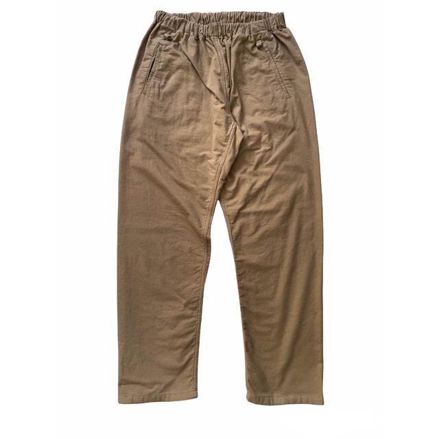 EACHTIME.のイージーパンツ。 今回は起毛加工の施されたネル素材を採用し、ソフトな穿き心地と柔らかな雰囲気に仕上がっています。 EACHTIME.のイージーパンツは、サイドに縫い目を入れないシームレス仕様。 これによりサイドから見るとチェック柄が綺麗に見える拘り様です。 ウエストはゴムに加え、ドローコードも通してあるので好みの位置で穿いていただけます。 フロントはスラッシュポケット仕様のため、見た目もスッキリしています。 腰部分の両側には鍵やチェーンのためのループも配しています。 ポケット部分は補強のスレーキも充てられています。 MADE IN SENDAI JAPAN M ウエスト 68〜110 股上 28 わたり巾 35.5 股下 77 裾巾 21 L ウエスト 74〜115 股上 29 わたり巾 39 股下 79 裾巾 22 ※サイズ表記と実際の商品とで若干の寸法差がある場合がございます。予めご了承下さい。 ※お使いのモニターの環境により色味に差が出る場合がございます。こちらも予めご了承下さい。 ※こちらの商品は実店舗でも販売中の為、在庫切れの場合もございます。予めご了承下さい。