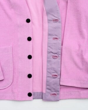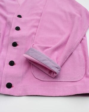 EACHTIME.の柔らかさと温もりを感じるパイル生地のカーディガンです。優しいオールドローズカラー。