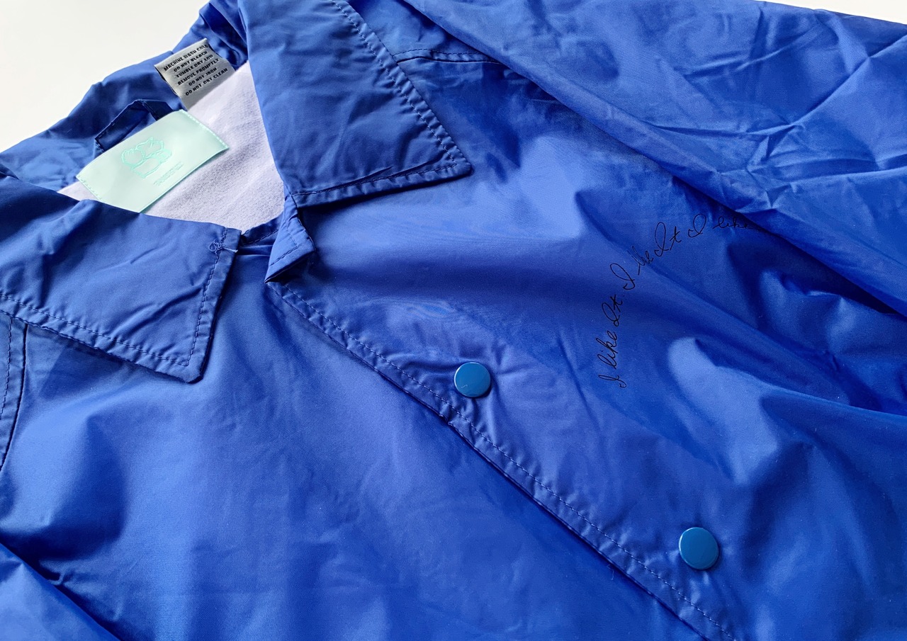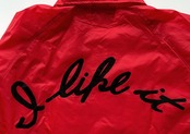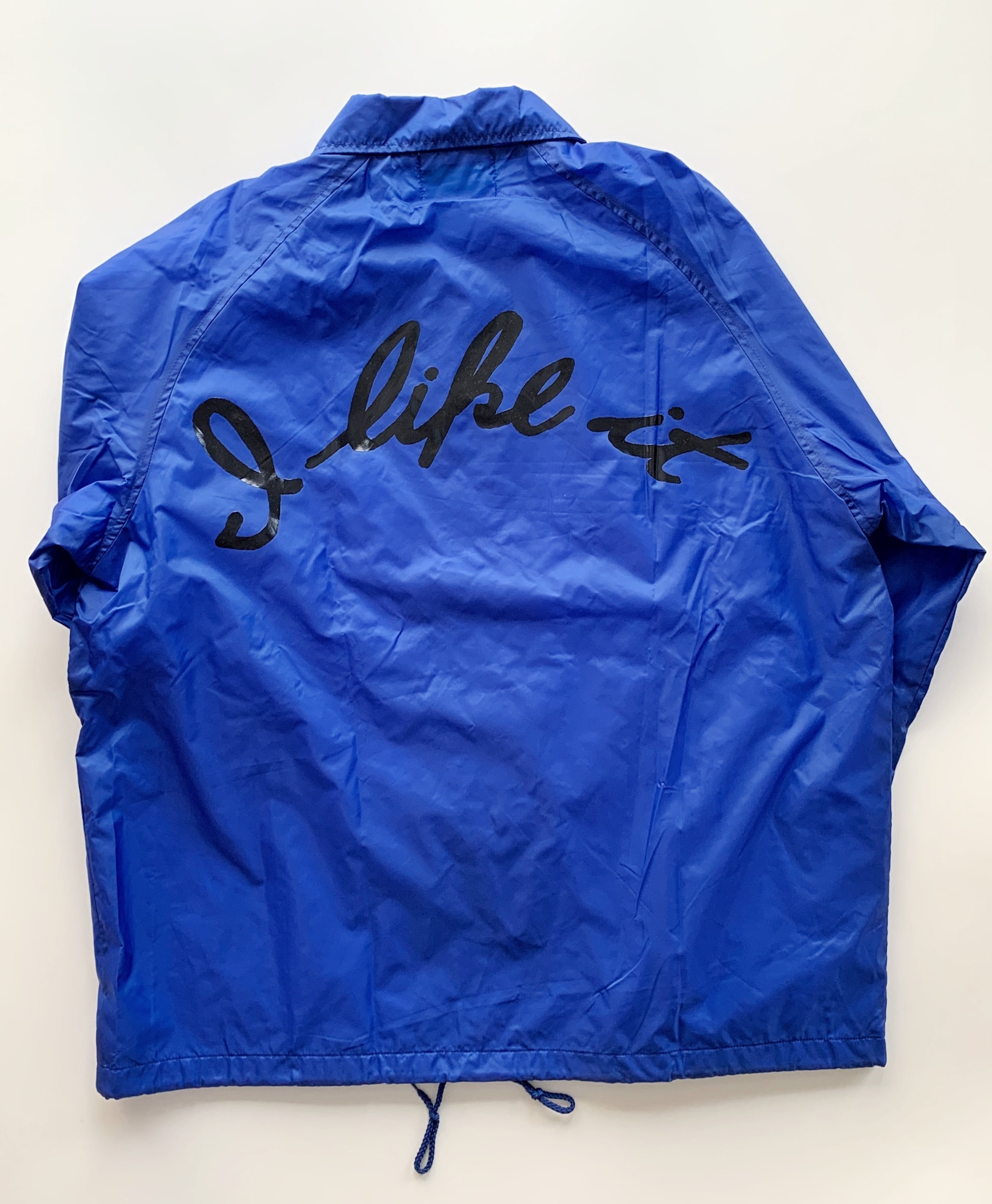 カーディナル社製のコーチジャケットの前面に" i like it. i like it. i like it. " 後ろに" I Like It "をプリント。