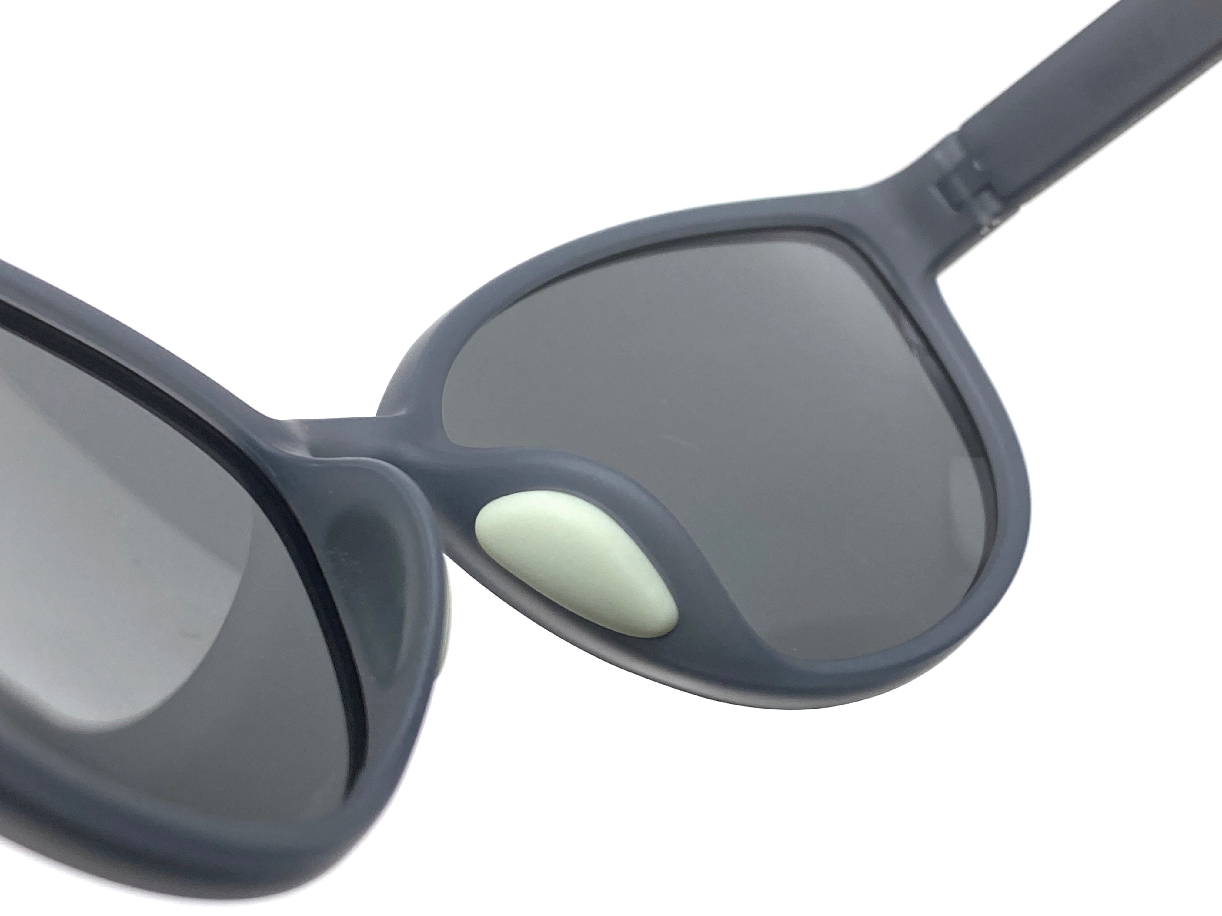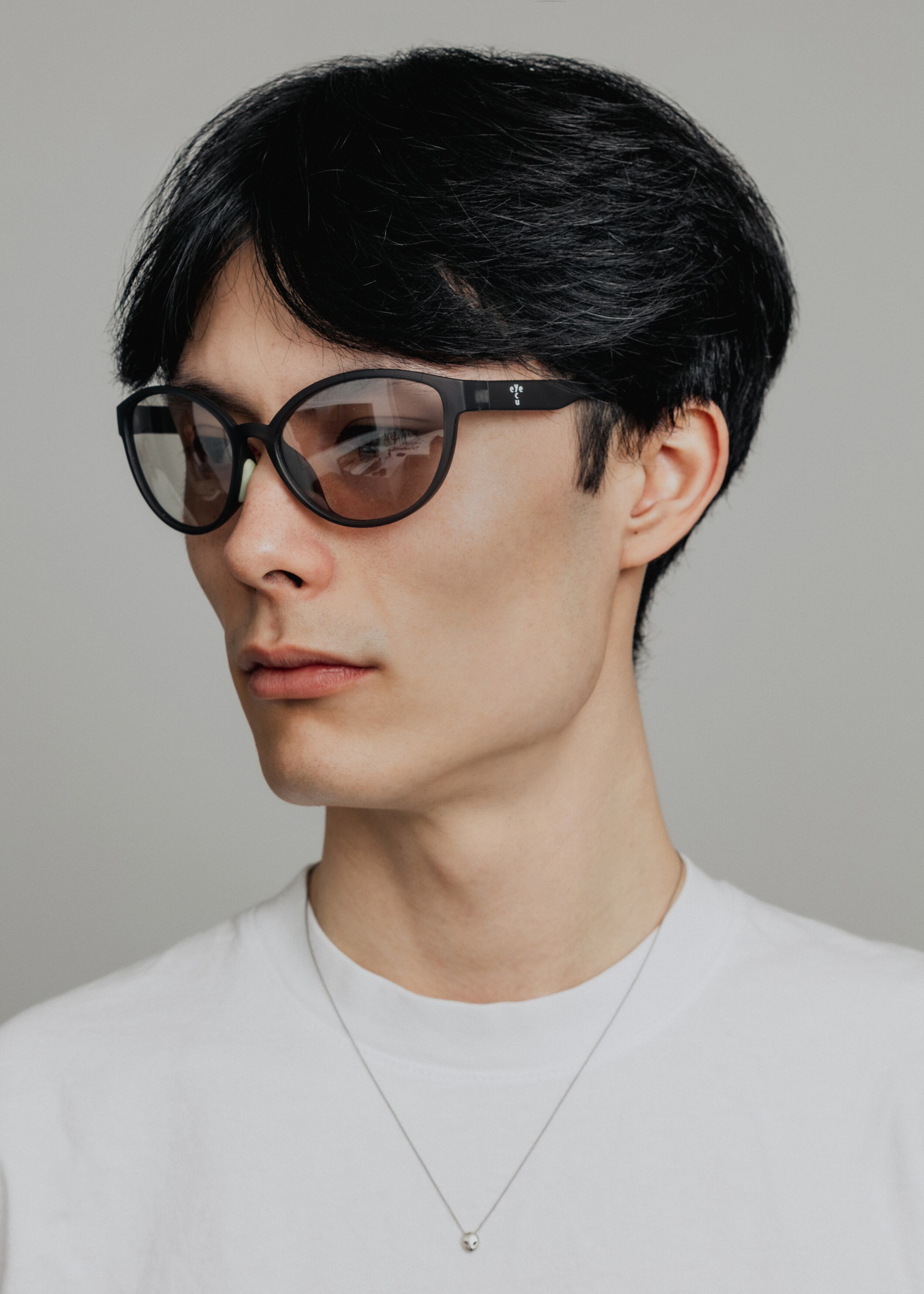 着用を忘れるような軽い掛け心地、テンプルのバネ感、激しい動きの中でも非常にずれにくいグリッフなどのスポーツグラスの機能性を持ちつつ、モタンでカジュアルなデザインを採用しています。レンズは 99% 紫外線カット・日光の照り返しを軽減する偏光レンズを使用し、さまざまなシーンに合わせて入れ替えられるよう、少し目の見える”Pale”とフルブラックの” Dark”二種類のレンズが付属しています。マットで少し透明感のある 3 色のモノトーン・フレームに、繊細な色味のペールターコイズのクリップがアクセントとなります。極端すぎないソフトなキャッツアイ型のクラシカルなシルエット。