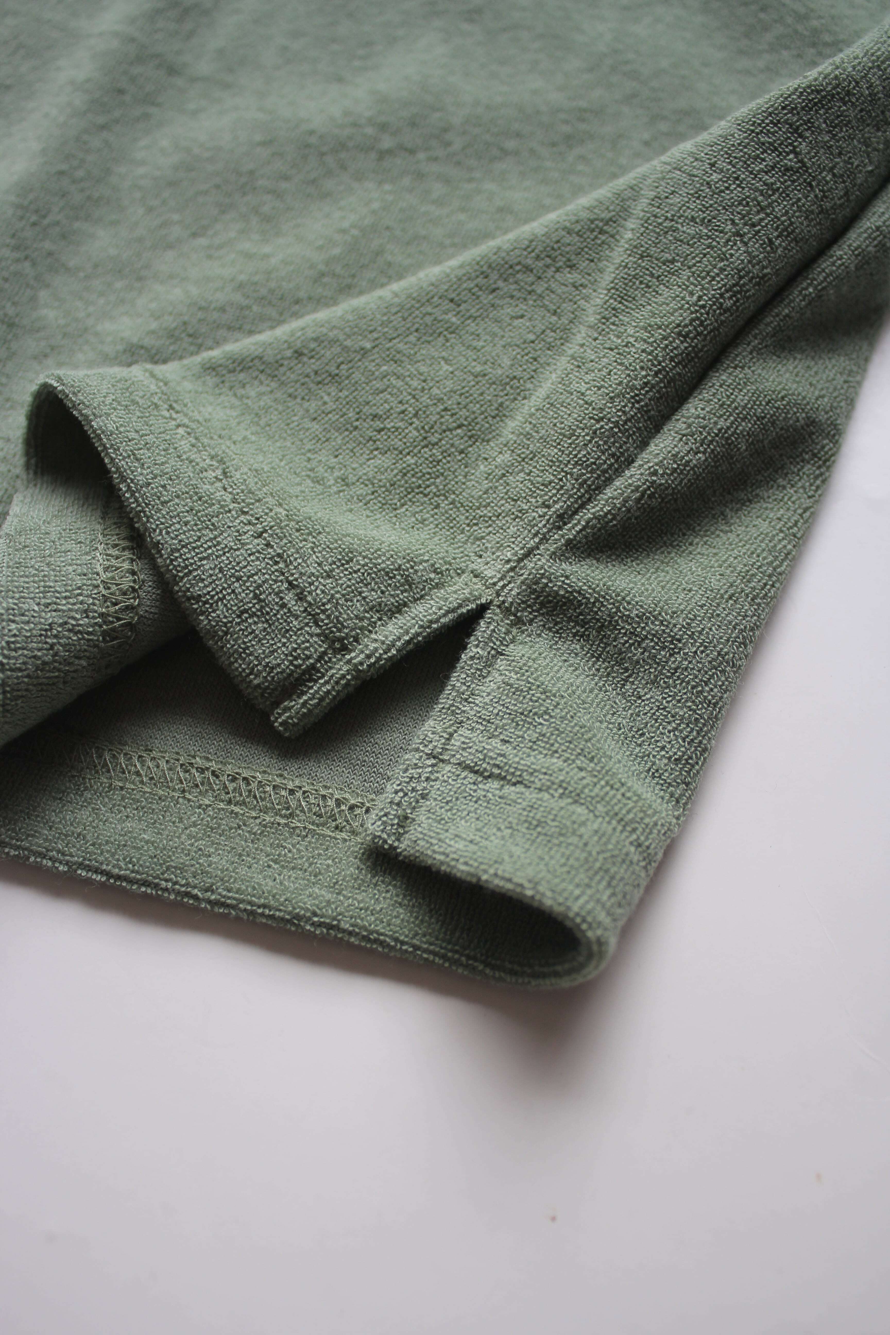 ディテールはEACHTIME.のPILE LONG SLEEVE T-SHIRTそのままゆったり目のシルエット、バインダーネック、裾にスリットなどしっかりとした仕上がりでいて後身にはポケットを備えています。